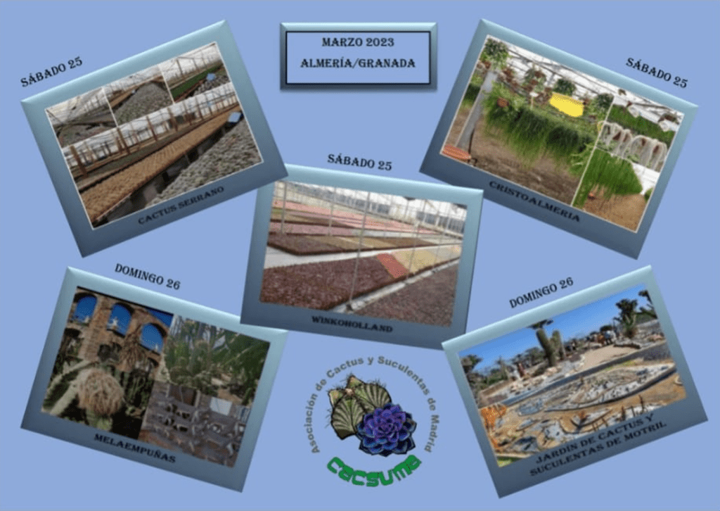 Sábado : visita, temprano, a Cactus Serrano, uno de los mayores productores de cactus y suculentas de Europa y referente en plantas e instalaciones en España. Todo el tiempo que podamos estar nos parecerá poco.