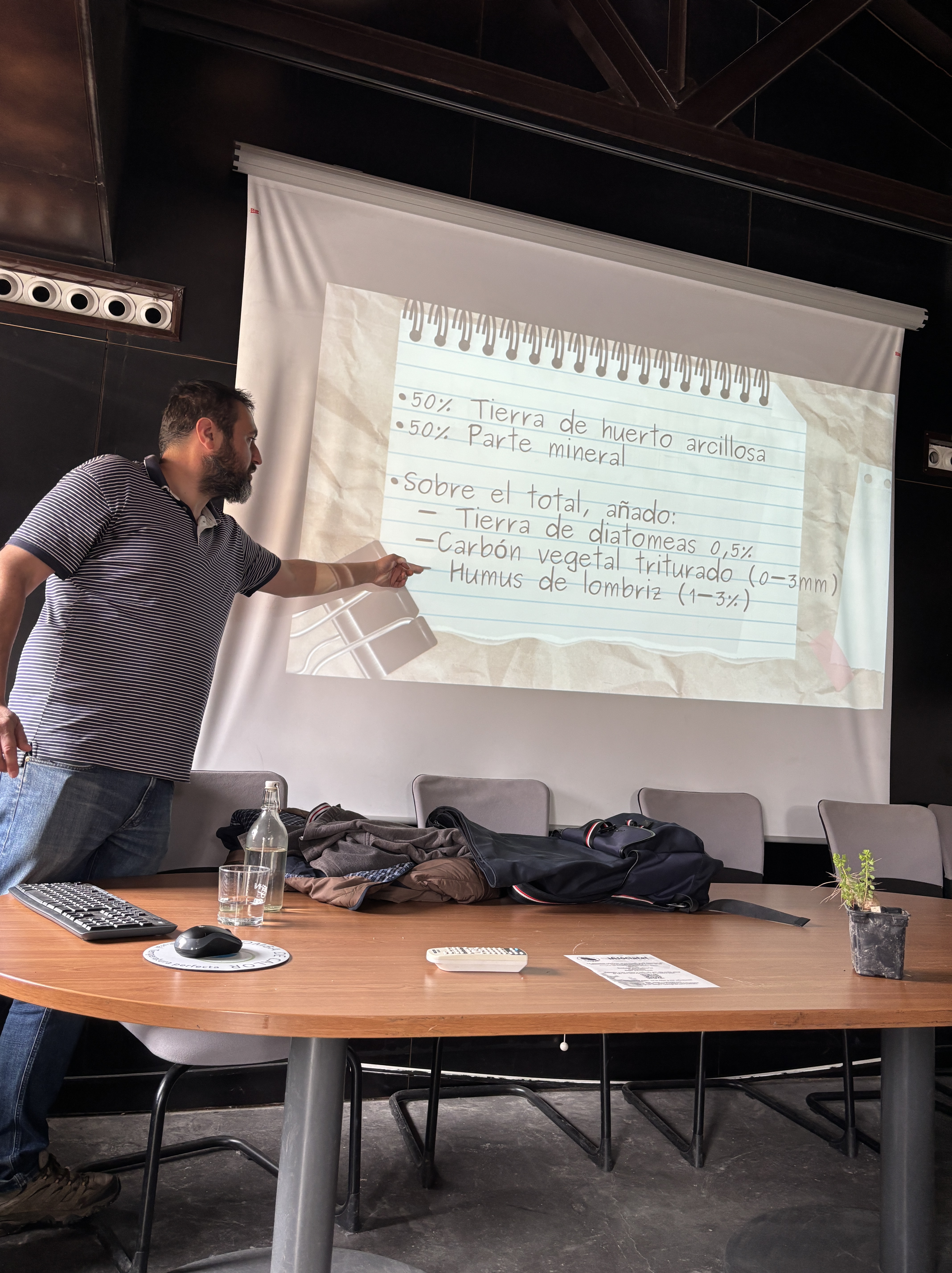 Interesante y muy práctica charla sobre los sustratos más adecuados para nuestras mimadas. Raúl dedicó mucho tiempo a resolver dudas tanto durante la charla como durante el taller donde los asistentes aprendieron a limpiar las raíces de la plantita que luego se llevaron a casa y a trasplantarla con la mezcla de sustratos que teníamos preparados al efecto.
